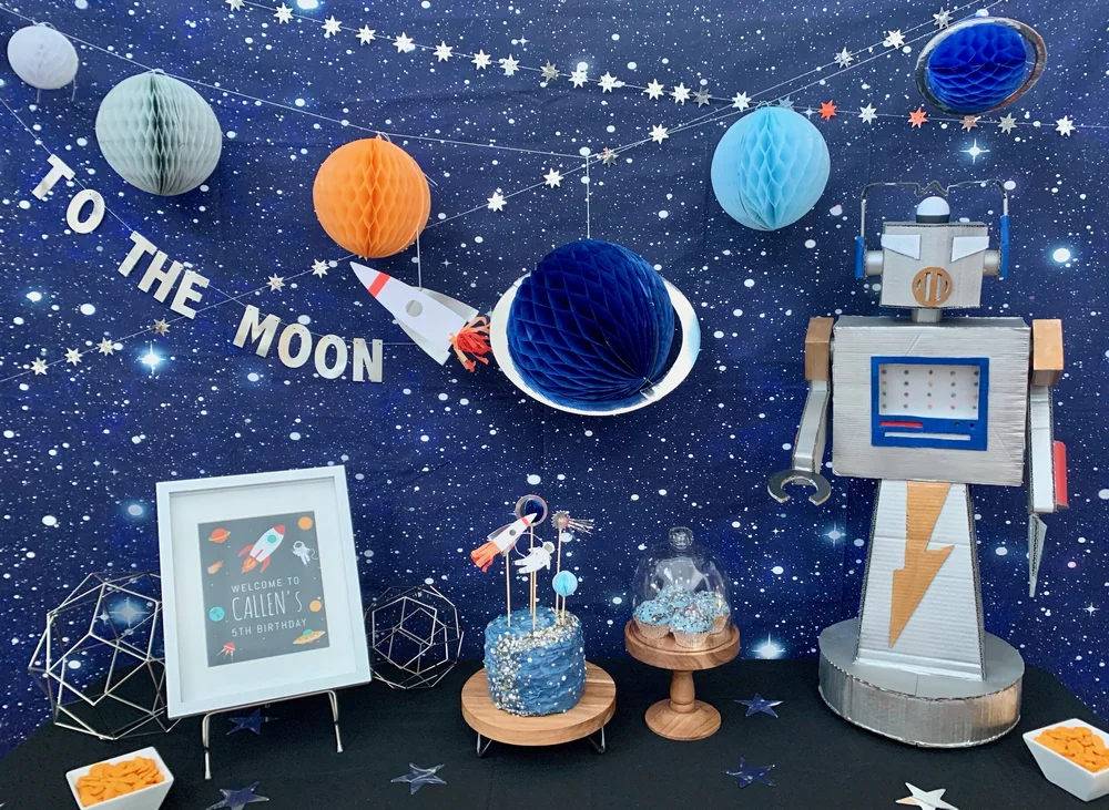 We have put this collection together using an intergalactic palette of midnight blue, silver, orange and black. Shop for the best galaxy and outer space theme party, party supplies & decorations. Easy ideas for space themed party decorations, food, games and favors. Outer space décor, party supplies, games and crafts are all you need to throw a party that's out of this world. It also sparks your kid's imagination.